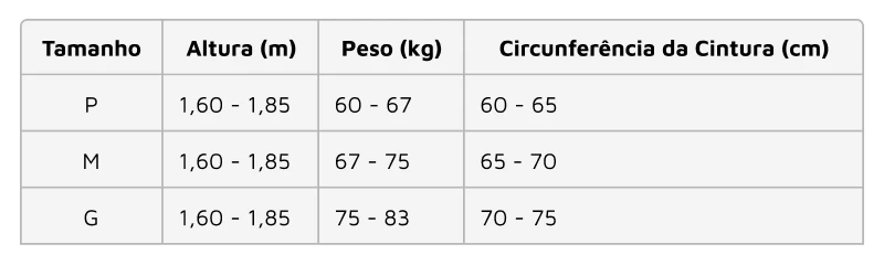 - Segurança com silicone nas pernas para evitar deslizamento.